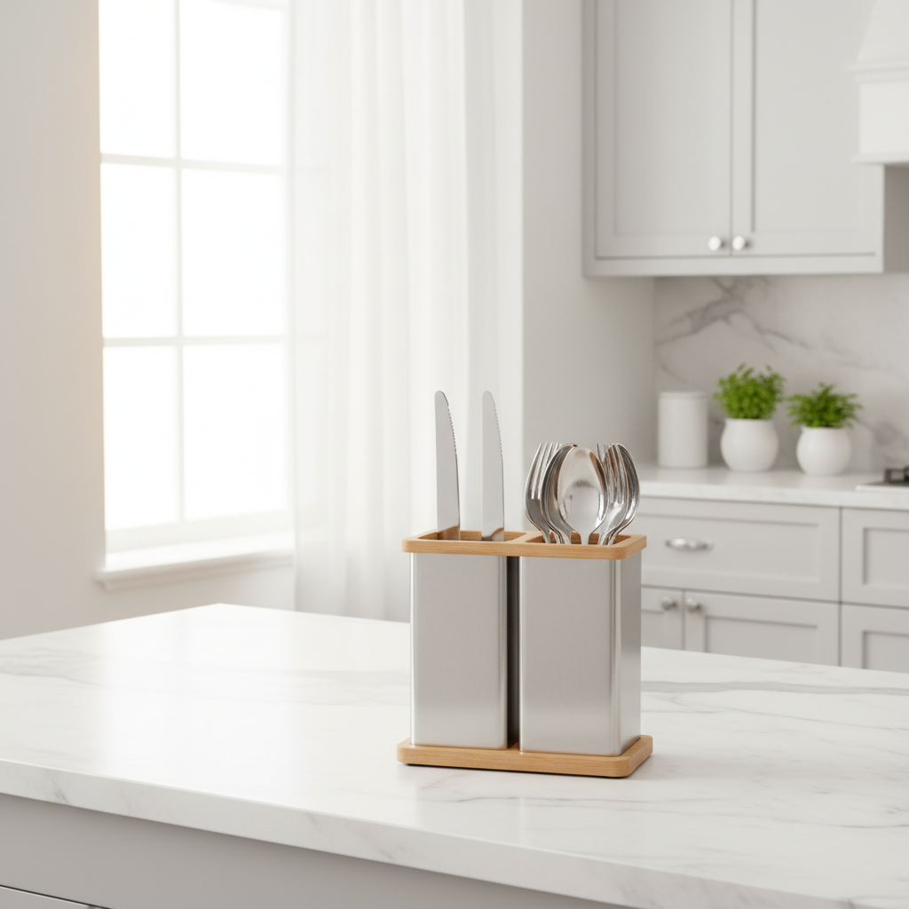 Med fokus på moderne design og praktisk anvendelse, vil denne bestikkoppbevaringen gi ethvert kjøkken et løft. Den kombinerer stil med funksjonalitet, og slipper deg unna med rotete skuffer. Ikke bare ser den bra ut, men den gjør også hverdagen enklere.