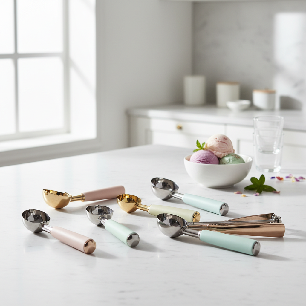 Designet med et ergonomisk håndtak, gir den et solid grep, noe som gjør bruken enkel og komfortabel. Enten du lager iskrem til en fest, puré til middag eller fruktballer til salater, er denne isskjeen et uunngåelig verktøy for både søte og salte retter. Den er også oppvaskmaskinsikker, noe som gjør rengjøring til en lek.