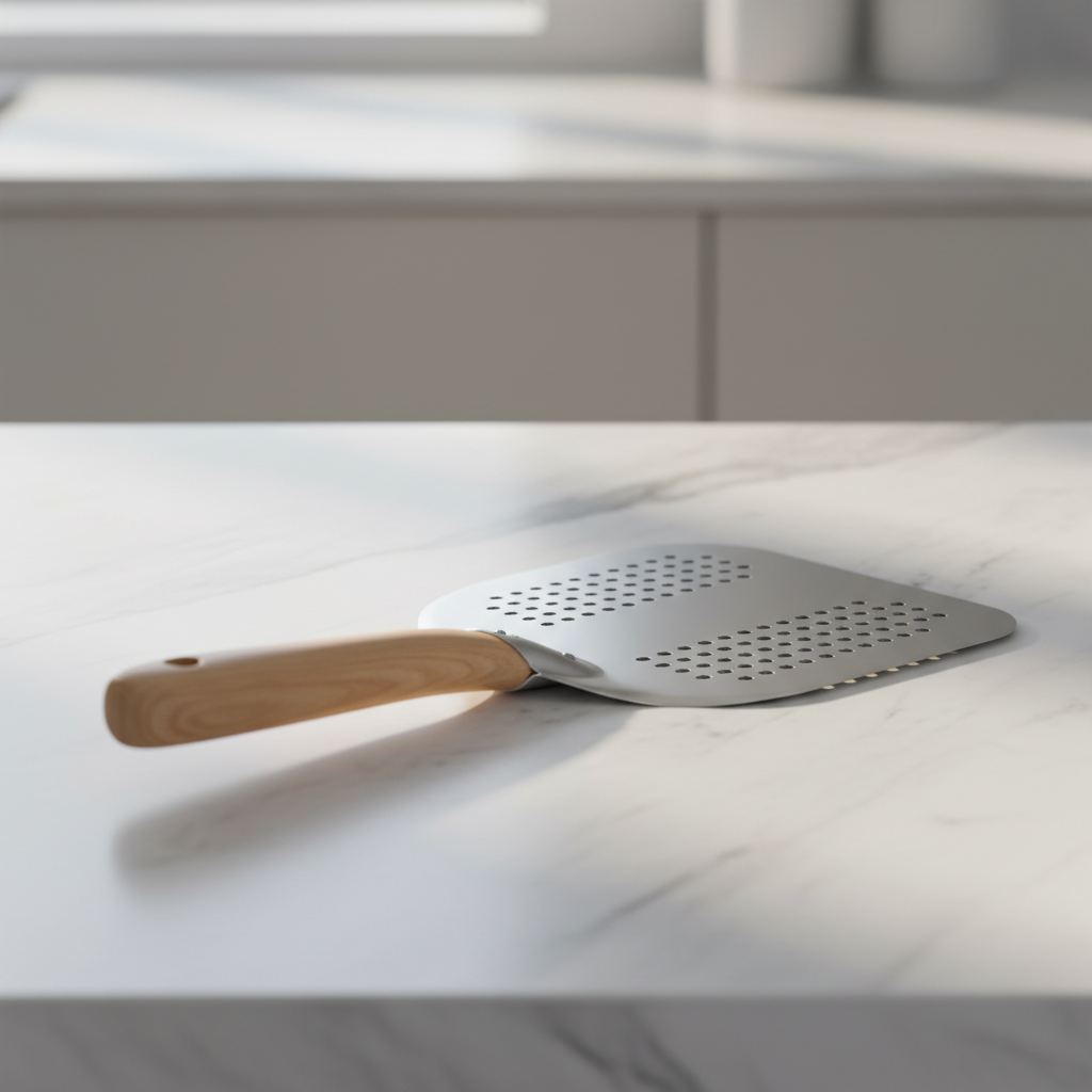 Spaden har en lett og slitesterk konstruksjon utstyrt med perforeringer som effektivt fjerner damp og overflødig mel, noe som resulterer i en sprøere pizzabunn hver gang.