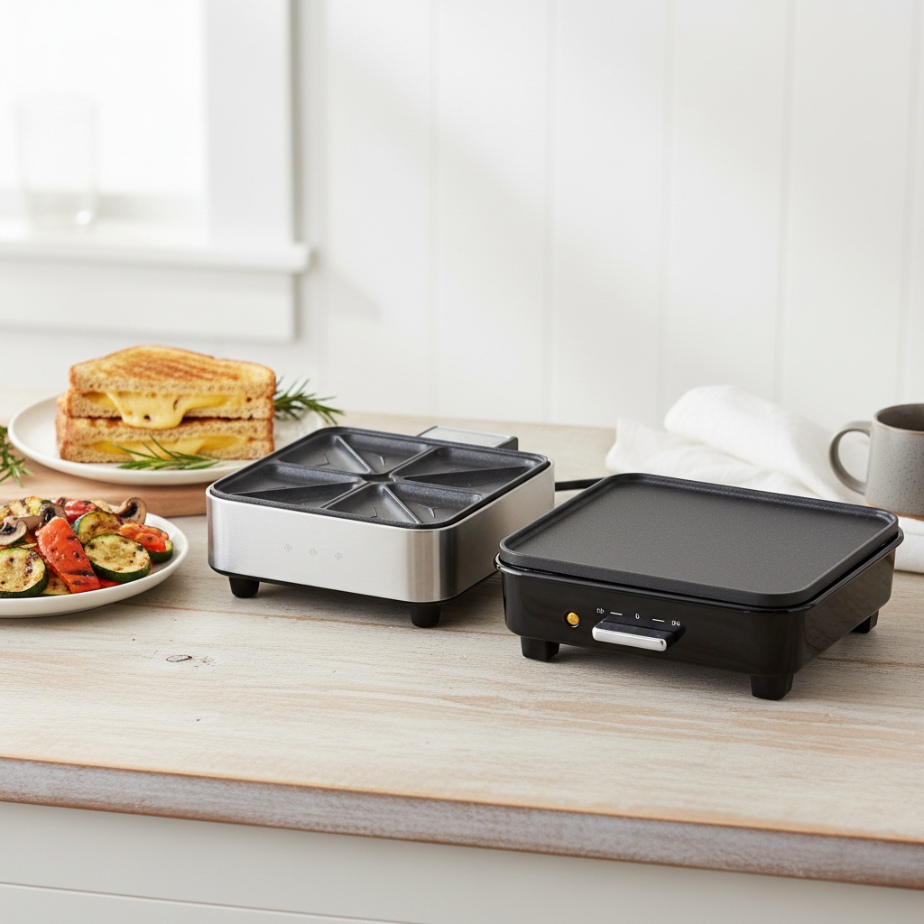 Enten du vil lage grillede ostesmørbrød, quesadillas, eller varme smørbrød, er dette en smørbrødgrill som gir deg mange muligheter. Perfekt for både hverdagsmatlaging og festlige anledninger.
