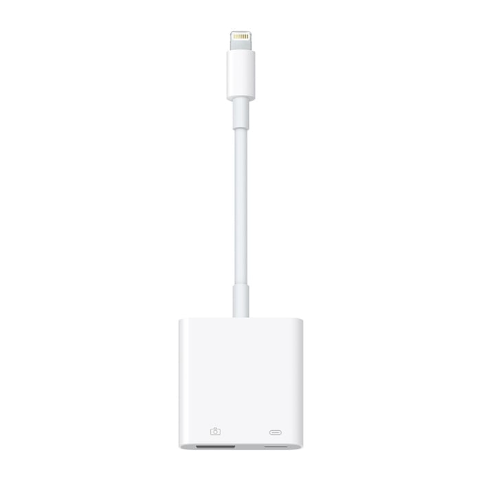 Adapter for å importere bilder og video fra et digitalkamera til en iPad med Lightning-kontakt. Adapteren åpner automatisk fotoappen når den kobles til. Kan også brukes til å koble til USB-tilbehør som passer til adapteren (f.eks. enkelte USB-mikrofoner). Adapteren kan strømforsynes (via Lightning), hvilket gjør det mulig å koble til f.eks. USB-huber og minnekortlesere. Lightning-hann til USB-hunn.