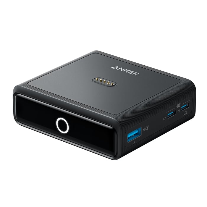 Anker 100W ladestasjon gir en enkel og effektiv måte å lade din Anker Prime Power Bank på. Plasser powerbanken på basen for umiddelbar lading opptil 100W. Med totalt 100W delt mellom 3 USB-porter og 1 Pogo-pin, kan du lade flere enheter samtidig. GaN-teknologien sikrer pålitelig hurtiglading i et kompakt design. En smart LED-indikator viser statusen til powerbanken din, og blinker under lading og lyser konstant når den er fulladet.