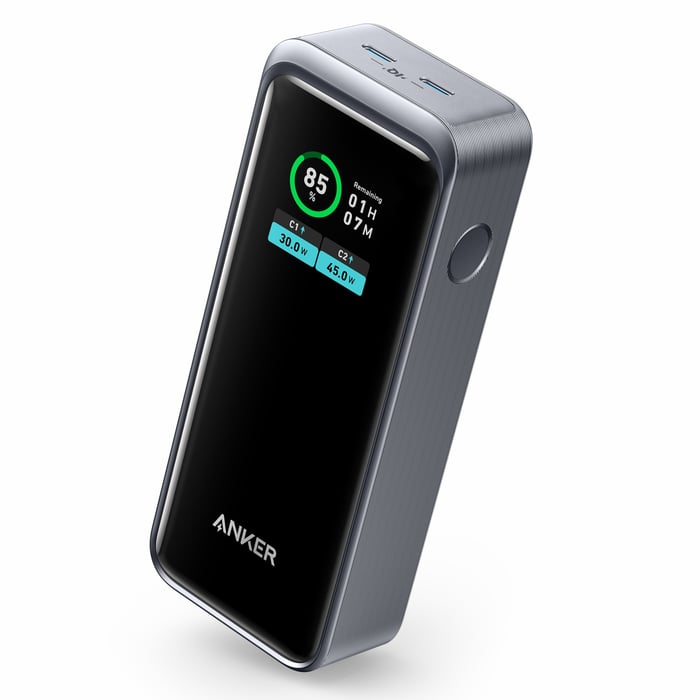 Anker Prime er en kraftig powerbank med USB PD for laptops, nettbrett, mobiltelefoner og annet tilbehør. Utstyrt med integrert statusdisplay som viser resterende batteritid og hvor mye de enkelte portene leverer. Kapasitet på 12000 mAh og kompakt design som er lett å ta med i vesken. Leverer opptil 130 W PD-lading. Leveres med USB-C-kabel og oppbevaringspose.
