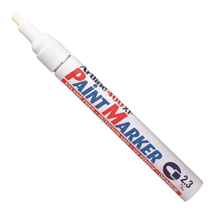 Merkepenn med rund spiss og 2,3 mm skrivebredde. For permanent merking inne og ute. Pennen er veldig vann- og fargebestandig og har en aluminiumshylse. Pigmentfarge uten Xylen. Farge: hvit.