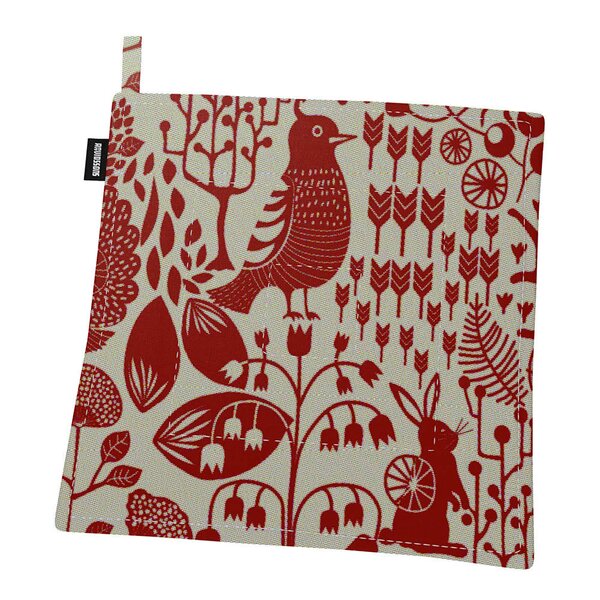 Fyri gryteklut rød fra Arvidssons Textil er designet av Linda Svensson Edevint og har et tett, repeterende mønster i rødt og beige. Stilen er inspirert av nordisk tekstilhistorie, med innslag av tradisjonelle vev- og broderiteknikker. Grytekluten er laget i 80 % bomull og 20 % polyester, og trykket i Spania. Et funksjonelt og dekorativt tillegg til kjøkkenet. Vaskes på 30 grader. Krymper 3–4 %. Mål: 22x22 cm.