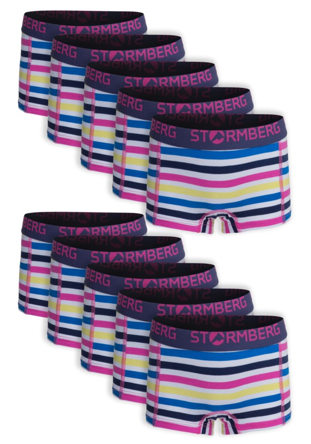 10-pk boxershorts til jente 1-7 år i en myk og finkjemmet bomullskvalitet med spandex. Denne materialkombinasjonen gjør at boxeren er meget god og behagelig å ha på, samt at spandexen gjør at det er elastikk i boxershortsen, noe som øker komforten.