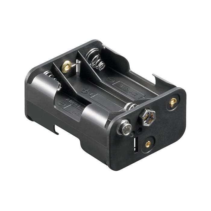 Batteriholder for 6 stk R6 (AA). Kontaktilkobling: (39173) eller (39778). Mål: 58 x 45 x 28 mm.