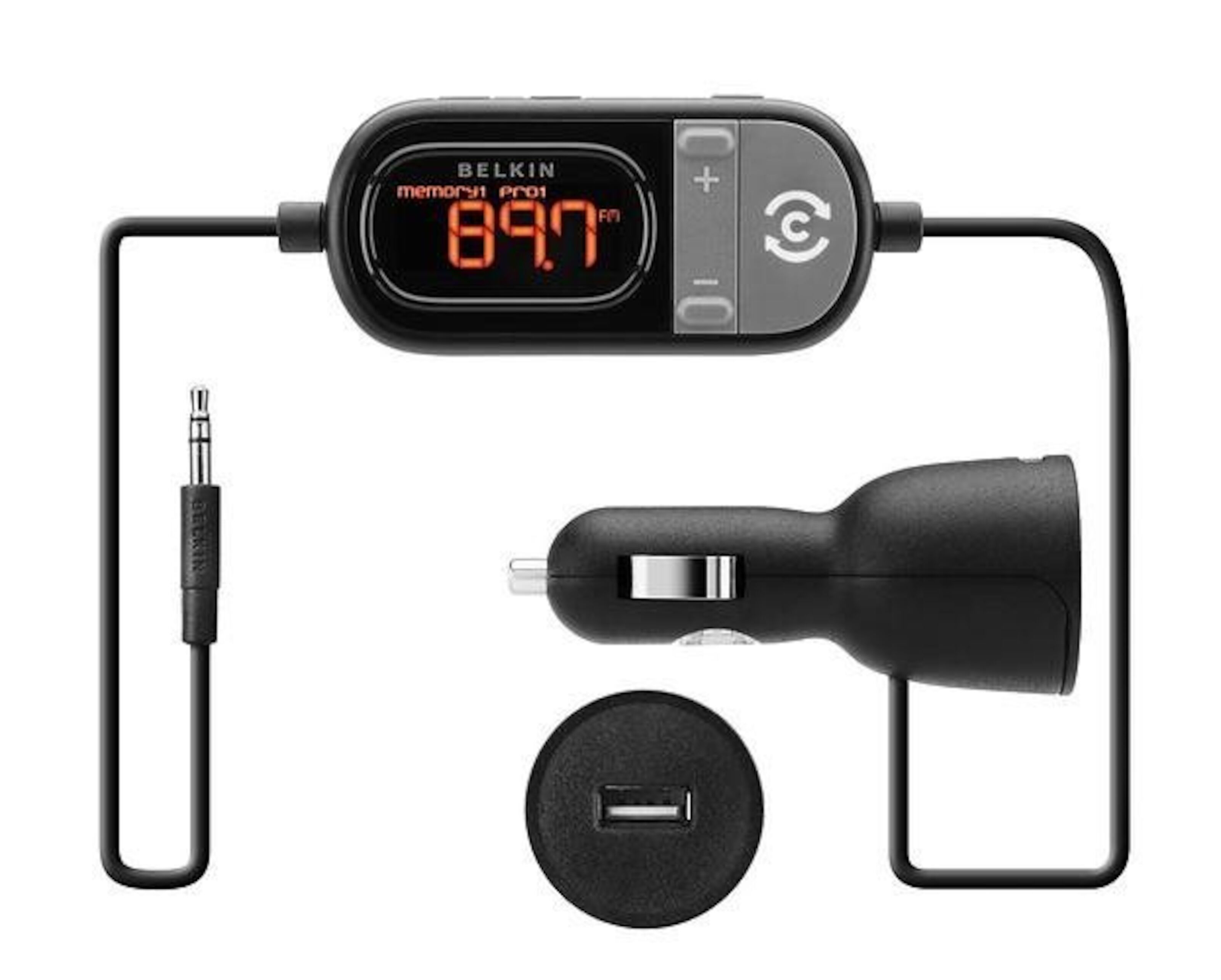 FM-sender som sender lyd fra mobiltelefonen til radioen. ClearScan søker ut den beste frekvensen for overføring ved et knappetrykk. Fungerer med enheter som har en 3,5 mm-tilkobling. Drives direkte fra bilens 12 V-uttak. Utstyrt med en USB-port for lading av for eksempel en mobiltelefon.OBS! Dette produktet bruker FM-båndet for distribusjon av radiokanaler. I Norge brukes FM-båndet av lokalradioer. Se oversikt over disse her. For produkter med støtte for DAB og DAB+ se her.