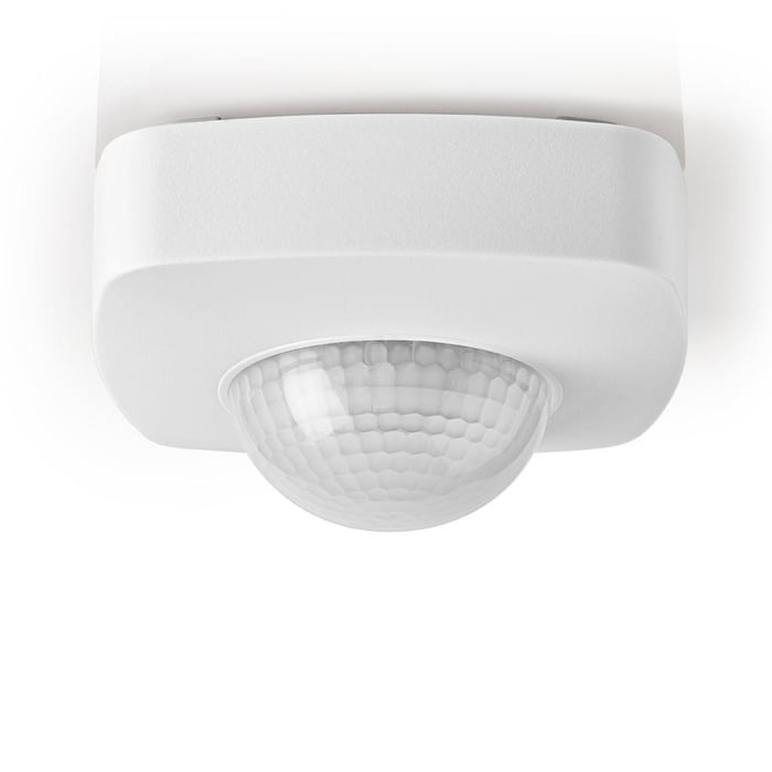 Bevegelsesdetektor for utendørsbruk (IP54) med IR-detektor og innebygd skumringsrele. Aktiveres ved bevegelse innenfor valgt lysområde. Justerbar etterlystid (10 s – 7 min) og lysnivå (3–2000 lux). Aktiveringsområde: 360° og maks. 8 m. Kobles direkte til 230 V med skruterminal (krever nøytralleder). Kan installeres med eller uten tenntråd. Maks. belastning: 1200 W gløde- og halogenlys samt 300 W for lysrør. Fungerer også med LED (5-300W).