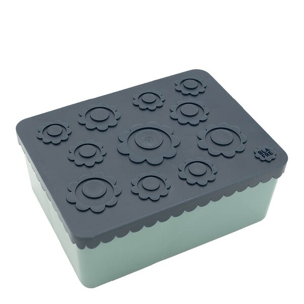 Blomst matboks i marineblå og blågrønn fra Blafre har tre rom som gir mulighet for å holde innholdet adskilt og oversiktlig. Med målene 7 x 14 x 19 cm er det plass til en liten yoghurt, som Tines Junior eller Yoplaits Safari, i tillegg til brødskiver, frukt eller snacks. Boksen passer fint inn i metallkoffertene fra Blafre og er laget i BPA-fri plast. Den er designet og produsert i Norge, og utformet med tanke på funksjonell bruk i barnehage og skole. Matboksen tåler oppvaskmaskin, men skal ikke brukes i mikrobølgeovn. Vaskes godt før første gangs bruk.