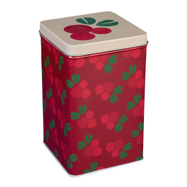 Denne røde metallboksen fra Blafre har et klassisk tyttebærmotiv og måler 10 x 10 x 16 cm. Den passer godt til oppbevaring av tørr mat som kjeks, te eller mel, og tar liten plass på kjøkkenbenken eller i skapet. Boksen er godkjent for oppbevaring av tørrvarer og er like funksjonell som den er dekorativ. Det tidløse motivet gir et nostalgisk preg, og den røde fargen gjør boksen til et blikkfang i rommet. For å bevare mønsteret bør boksen vaskes for hånd med en fuktig klut og tørkes grundig. Ved skånsom bruk holder den seg fin i lang tid.
