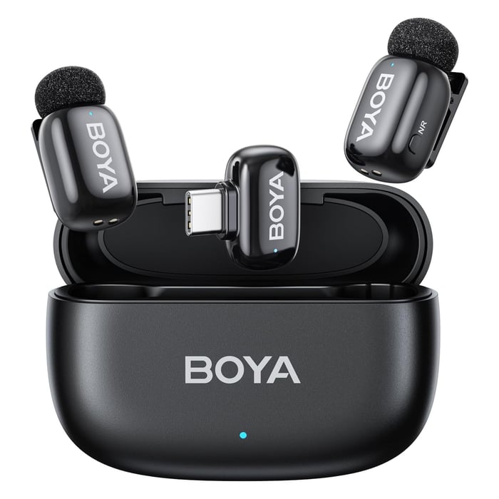BOYA Mini-14 er et ultramini trådløst 2,4 GHz mikrofonsystem med automatisk tilkobling, tre nivåer med støydemping og AI-drevet stemmeforbedring i sanntid. Mikrofonene veier bare 5 gram, men leverer klar lyd i studiokvalitet med 48 kHz/16-bit opptak. Med USB-C-tilkobling passer systemet perfekt til mobiltelefoner og nettbrett, og den samlede driftstiden på opptil 30 timer gjør det ideelt for lange opptak, livestreaming, videointervjuer og daglig innholdsproduksjon.