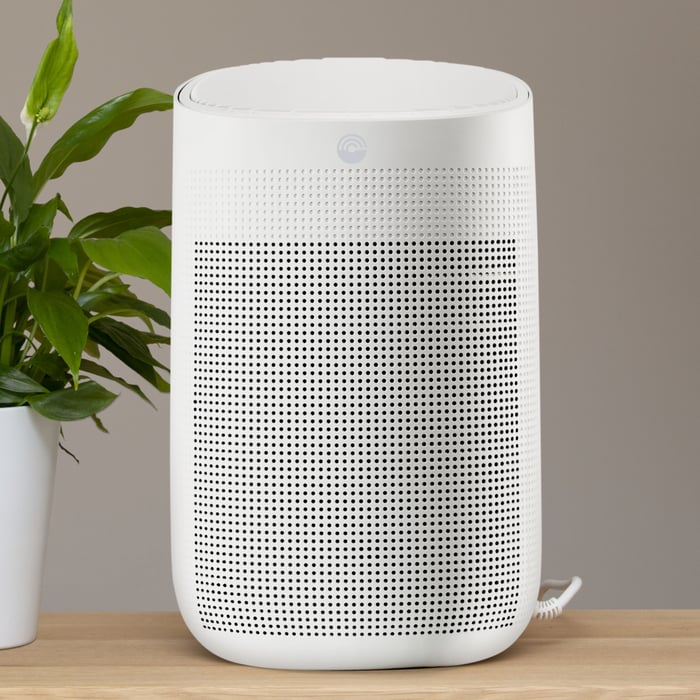 Kompakt og elegant avfukter for mindre rom på opptil 20 m², eksempelvis matboder og garderober. Har en kapasitet på 750 ml avfukting per dag og en vanntank på 1 liter. Styres enten via kontrollpaneler direkte på enheten eller via appen Smart Life (iOS/Android). Har HEPA-filter for renere luft, opptil 10 m². Rengjøres enkelt med en myk klut og litt rengjøringsmiddel. HEPA-filteret bør desinfiseres regelmessig, noe som enklest gjøres ved å plassere det i solen. For erstatningsfilter se (90261).