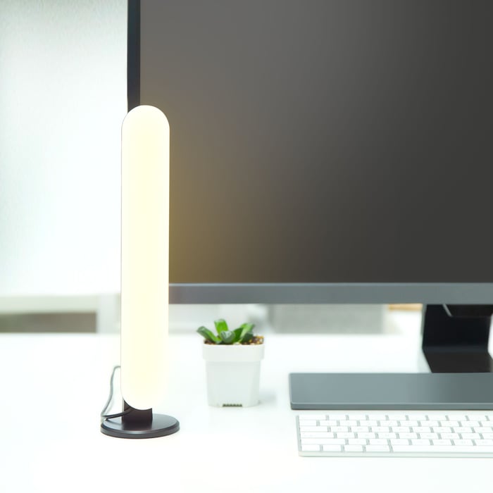 Elegant lyskilde for plassering på bord eller vegg. Kobles til wifi via appen Smart Life – Smart Living for justering av fargetemperatur, lysstyrke og farge og for smart tidsinnstilling og tilgang til timerinnstillinger. Reagerer på musikk og kan skifte lysinnstillinger elegant basert på takt. Kompatibel med Google Assistant og Amazon Alexa for praktisk styring med tale. Leveres med et stativ for plassering på bord og dobbeltsidig teip for veggmontering. Den medfølgende strømkabelen kobles til USB-lader (5V/0,5A) (USB-lader selges separat).