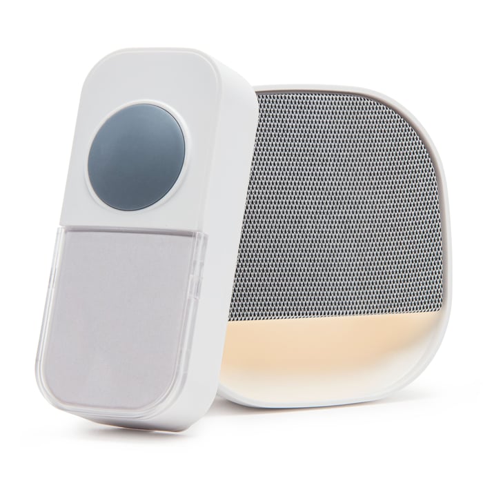 Trådløs dørklokke med trykknapp som hverken krever kabeltrekking eller batterier. Trykknappen er kinetisk, det vil si at den drives av energien som hvert knappetrykk genererer, mens dørklokken/mottakeren kobles direkte i strømuttaket. Kan bygges ut med ytterligere 7 trykknapper og 50 dørklokker. 36 ringesignaler og innebygd nattlampe som blinker når noen ringer på. Rekkevidde er opptil 100m avhengig av veggtykkelse og -materiale.