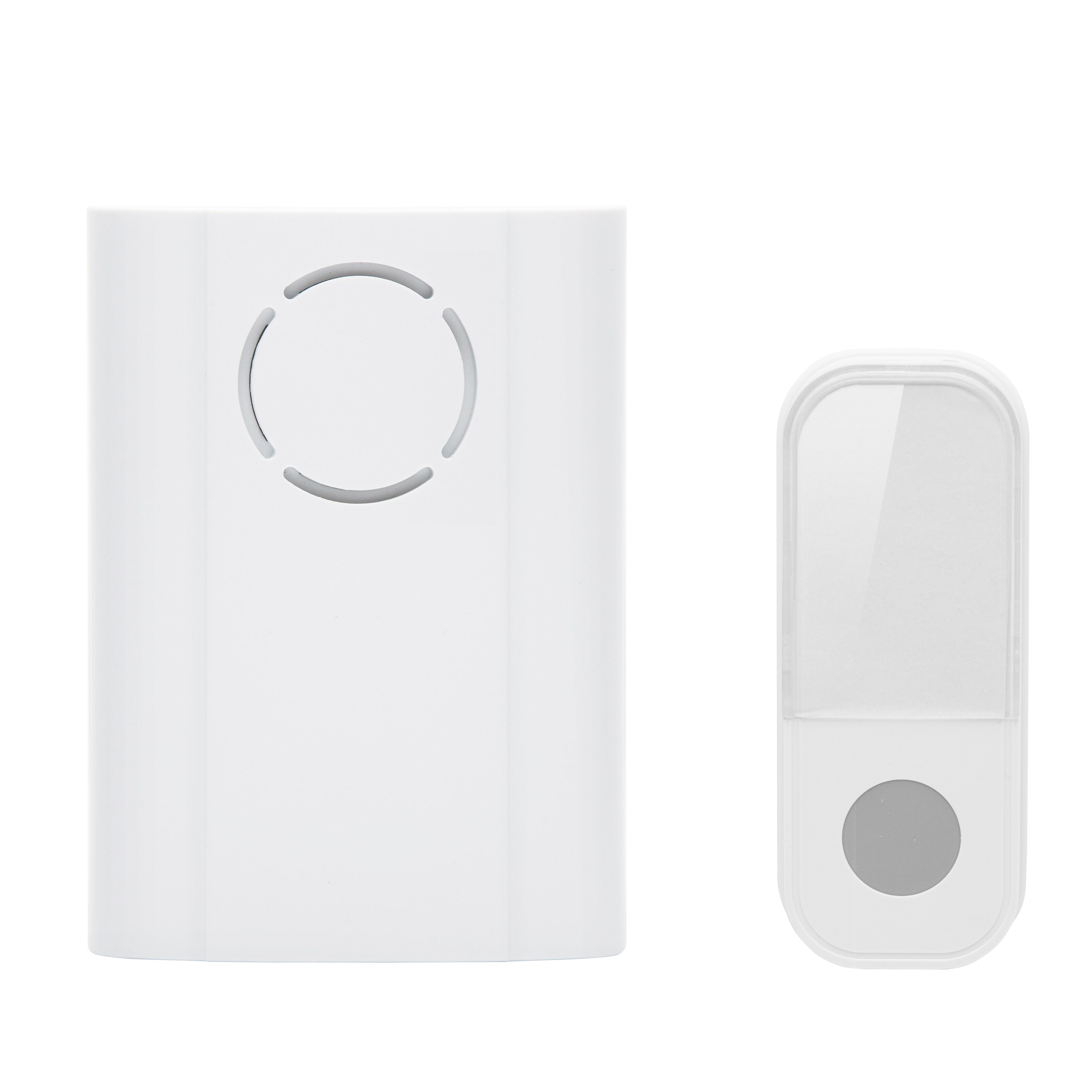 Trådløs ringeklokke med rekkevidde på opptil 100 m. Værbestandig sender (IP44) og mottaker som kan monteres på veggen og har 36 ulike ringesignaler. Mottakeren drives av 3x AA-batterier (følger ikke med), og senderen av 1x CR2032-batteri (følger med). Frekvens: 433 MHz. Leveres med dobbeltsidig teip og skruer. Mål: 85x35x16mm (sender), 94x69x29mm (mottaker).