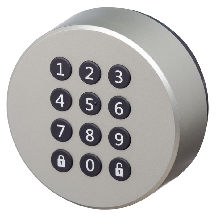 Knappepanel for å låse opp f.eks. dører ved hjelp av en Danalock-lås (51039). Det bakgrunnsbelyste knappepanelet kan håndtere opptil 20 ulike kodekombinasjoner (4 til 10 sifre). Alle koder kan ses og vedlikeholdes via Danalock-appen (Android og iOS). Konstruert med elegant dansk design og tilpasset for å motstå alle typer nordisk vær. Kobles til Danalock via Bluetooth 4.2 med AES-256-kryptering for høy sikkerhet. Drives av 4x AAA-batterier (følger ikke med). Mål: Ø82x35 mm.