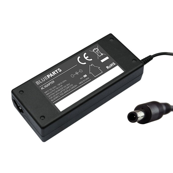 19 V-datamaskinlader med effekt på 90 W og DC-kontakt med målene 5,5 x 3,0 mm. Passer til datamaskiner fra Samsung. Inngangsspenning: 100–240 V. Maksimal belastning: 4,74 A. Leveres med C7-apparatkabel (0,9 m).