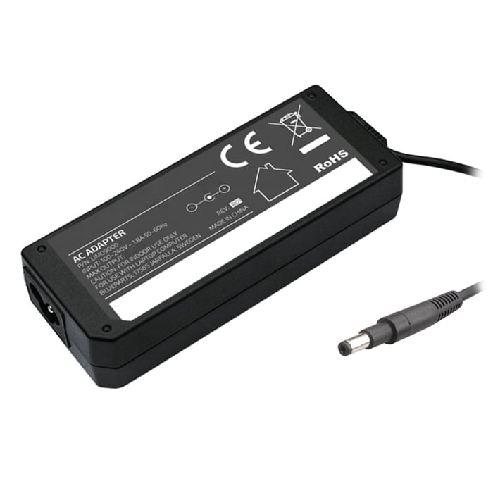 19,5 V-datamaskinlader med effekt på 65 W og lang DC-kontakt med målene 4,8 x 1,7 mm. Passer til datamaskiner fra HP. Inngangsspenning: 100–240 V. Maksimal belastning: 3,3 A. Leveres med C5-apparatkabel (0,9 m).