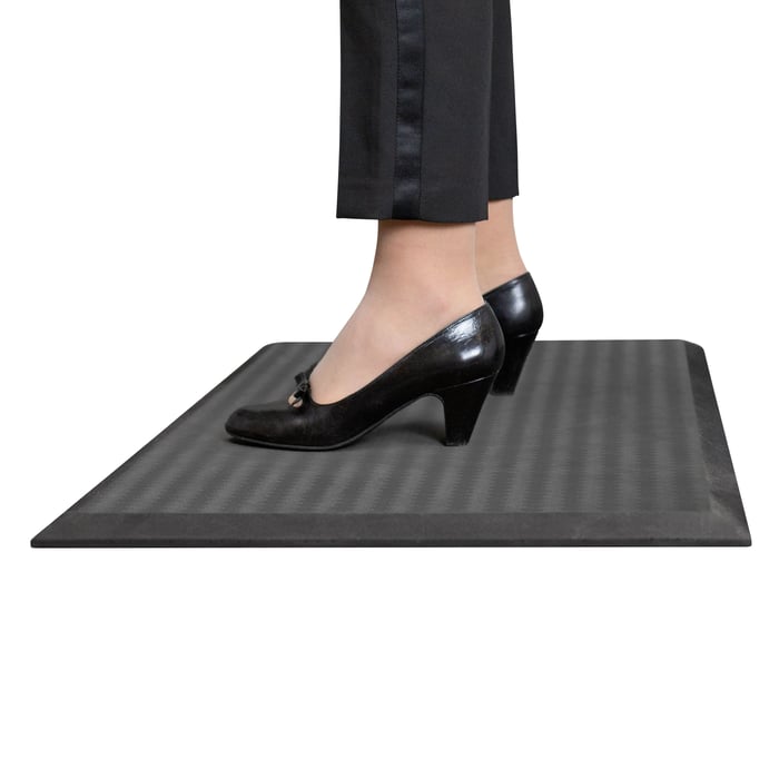 Ergonomisk ståmatte og arbeidsmatte for hjemmekontor og ståpult. Motvirker trøtthet i bena, avlaster skuldre og rygg og stimulerer blodsirkulasjonen. Perfekt for lange økter ved ståpulten. Den gummierte matten med gelskum på innsiden har høy strekkfasthet for å motstå at den slites i stykker eller at den trykkes sammen med tiden. Farge: svart. Mål: 51x85x1,9 cm.