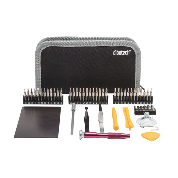 Stor verktøypakke som inneholder det meste for reparasjoner av mobiler, spillkonsoller og datamaskiner. Inneholder 42 bits på 4 mm, skrujern med roterbar topp, to åpningsverktøy, sugekopp, bendeverktøy, åpner for Sim-kortholder, pinsett og magnetplate for skruer. Bits: flat (1 mm, 1,5 mm, 2 mm, 2,5 mm og 3 mm), stjerne (PH000, PH00, PH0 og PH1), pentalobe (0,8 mm (P2), 1,2 mm (P5) og 1,5 mm (P6)), torx: (T3, T4 og T5), torx med styrehull (T6, T7, T8, T10 og T15), unbrako: (0,9 mm, 1,3 mm, 1,5 mm, 2 mm, 2,5 mm og 3,0 mm), tri-point (Y0 og Y1), triangel (TA1,6, TA2,0, TA2,2 og TA2,3) og firkant (S0 og S1). Piper: (2,5 mm, 3,0 mm, 3,5 mm, 4,0 mm, 4,5 mm og 5,0 mm).