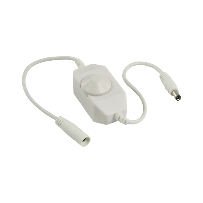 Dimmer med vriknapp for LED-lister. Helt avslått når den er skrudd helt til den stopper. Kobles til med DC-kontakt (5,5x2,1 mm). Kompatibel med f.eks. (64075).