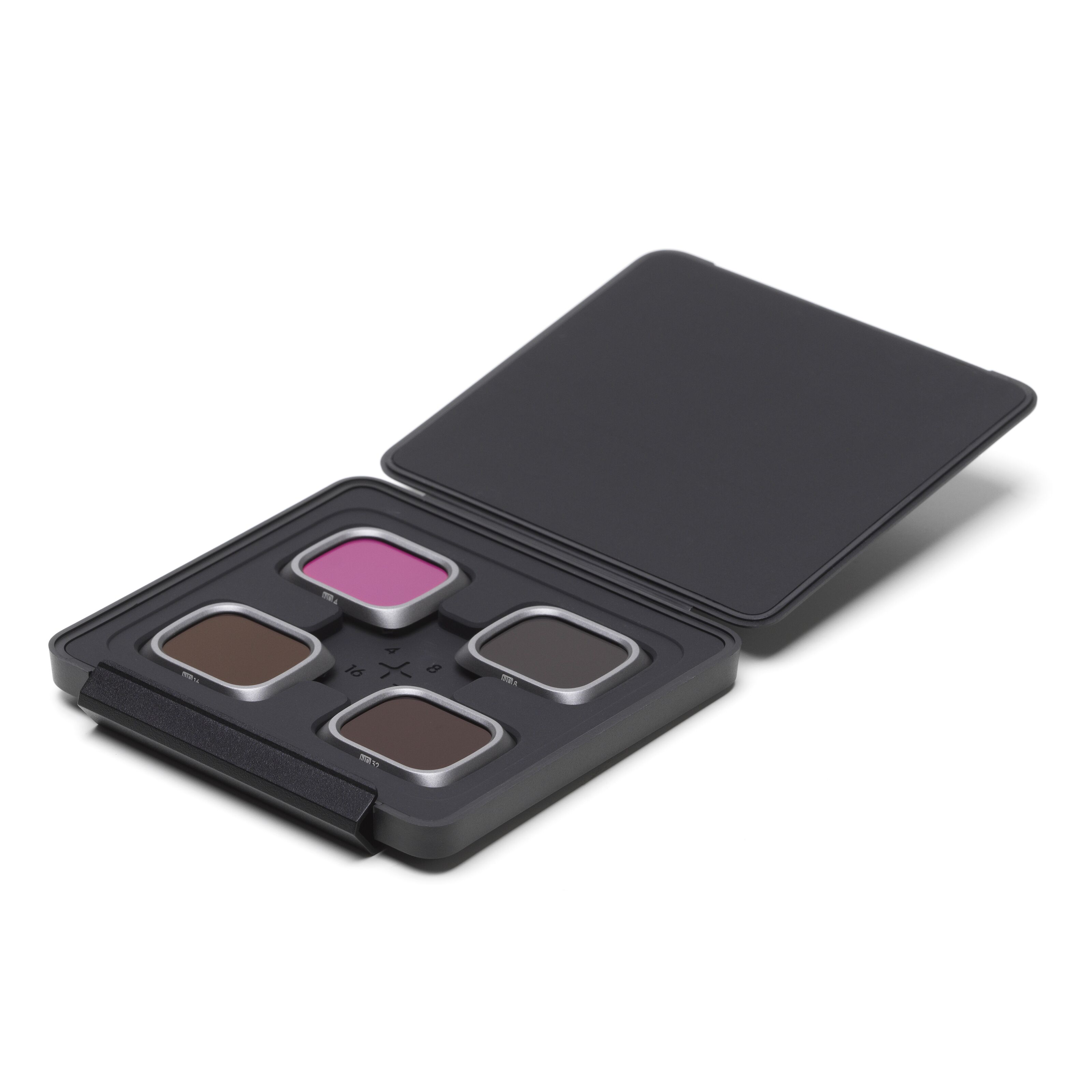 Filtersett for Air 2S. Reduserer lysnivået for å unngå overeksponerte filmer og bilder. Gjør det mulig å matche blenderen med innspillingshastigheten (fps). Fire ulike filtre for ulikt lysinnslipp (1/4, 1/8, 1/16, og 1/32). Inneholder: ND4, ND8, ND16 og ND32.