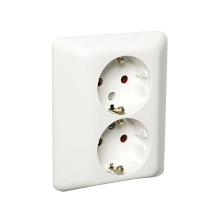 Innfelt jordet 2-veis stikkontakt med skrueterminal fra Elko RS-serien. Farge: fjellhvit. Maks. strøm: 16 A.