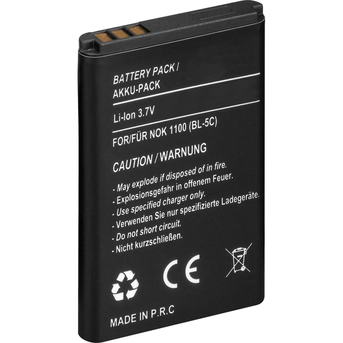 Erstatningsbatteri som passer til Nokia-mobiltelefoner (bl.a. 2600 og 6230, se kjell.com for flere modeller). Li-pol. Spenning: 3,7 V. Kapasitet: 1050 mAh.