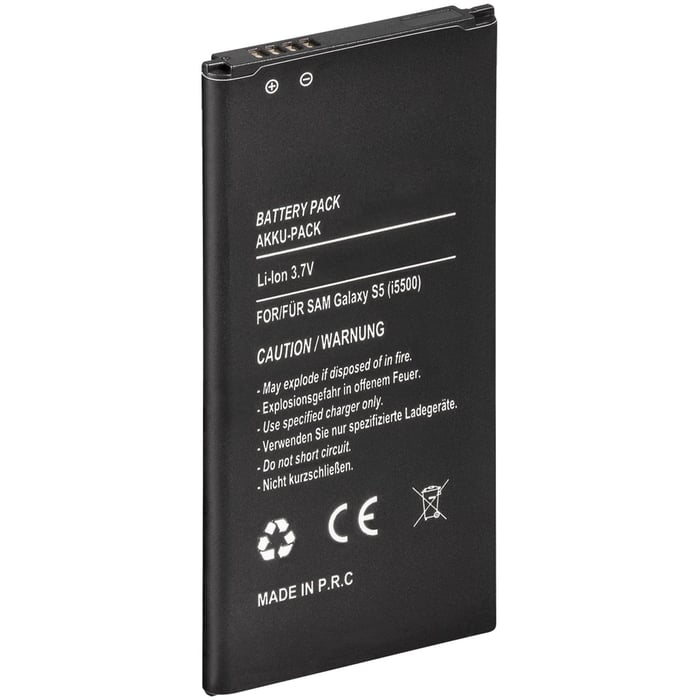 Erstatningsbatteri til Galaxy S5 (SM-G900F), Galaxy S5 Plus (SM-G901F). Li-ion. Spenning: 3,8 V. Kapasitet: 2800 mAh. Støtter ikke NFC. Tilsvarer: EB-BG900BBE.