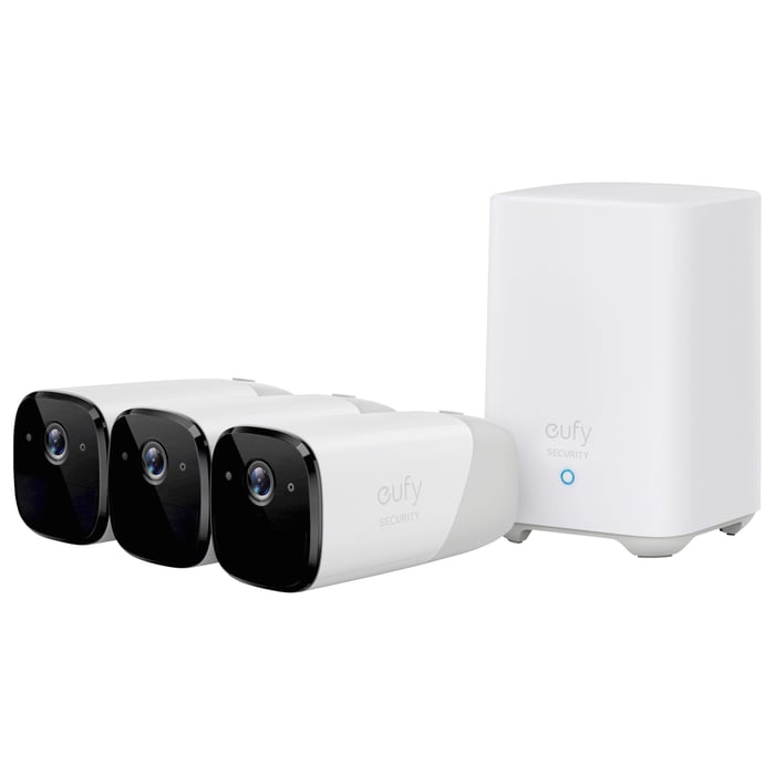 Føl deg trygg hjemme – og borte fra hjemmet – med trådløse overvåkingskameraer fra Eufy. EufyCam 2 Pro Kit består av 3 helt trådløse kameraer med hele 1 års batteritid per lading, 2K-oppløsning og utmerket nattsyn fra Sony-sensoren og F2.0-blenderen. Kameraene kommuniserer helt trådløst med den medfølgende basestasjonen med innebygd lagring (16 GB) for trygg, kryptert og lokal lagring uten månedskostnader.
