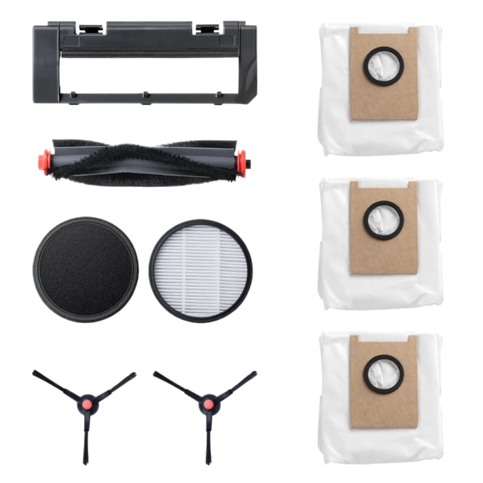 Eufy Half Year Combo er en komplett vedlikeholdspakke for din Eufy E20-støvsuger og inneholder alle viktige reservedeler for å holde enheten i topp stand. Pakken inkluderer 1 rullebørste og børstebeskyttelse, 4 høyytelsesfiltre, 2 sidebørster, 2 rullemopper, 1 filter til skittenvannstanken samt 3 støvsugerposer. Perfekt for å sikre effektiv rengjøring og forlenge levetiden til roboten din.