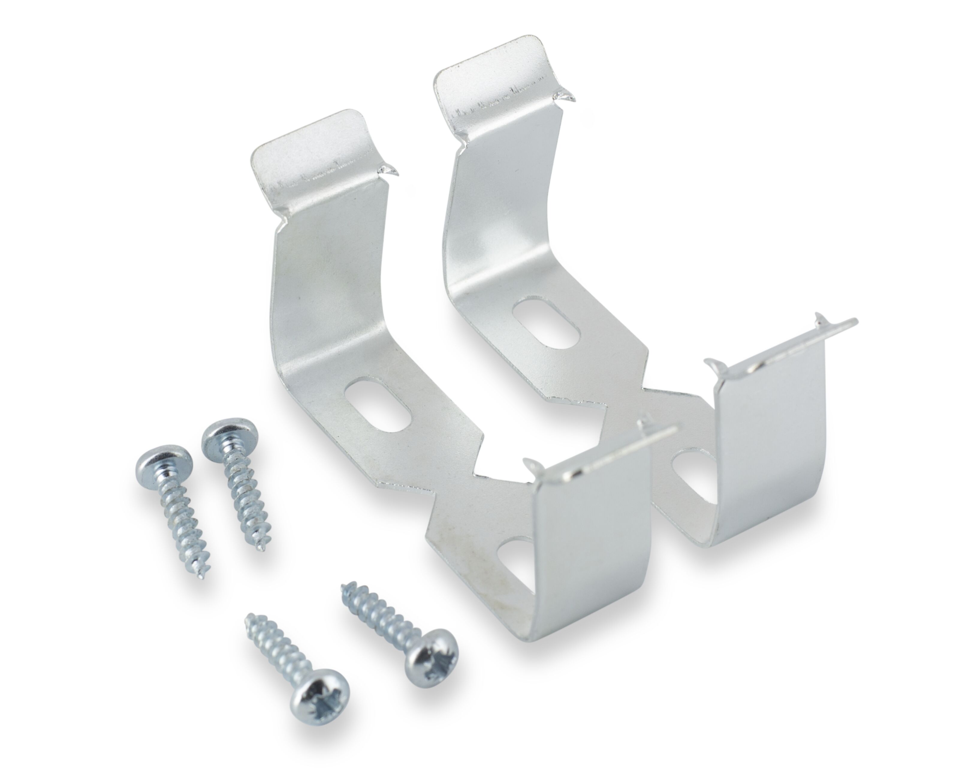 Fester i herdet stål som monteres på veggen. Grenuttaket holdes på plass med klemmene. Kan deles for å passe til bredere grenuttak. Pakke med to bøyler med skruer.