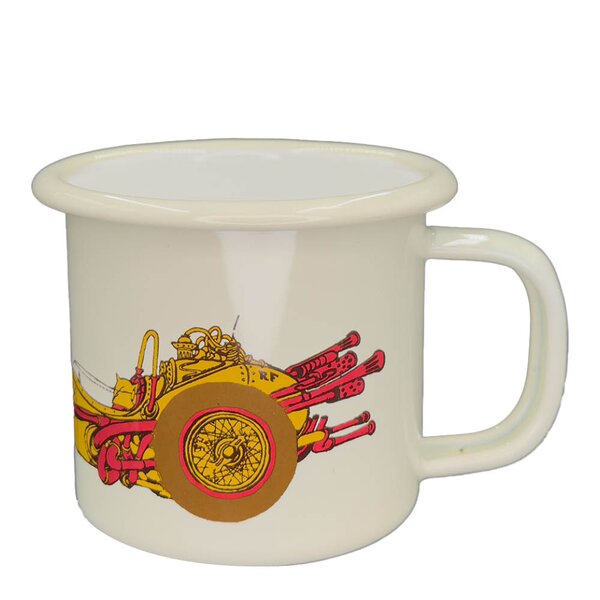 Denne emaljekoppen fra Flåklypa-universet har motiv av Reodor Felgen og Il Tempo Gigante, og passer perfekt til små pauser med noe varmt i koppen. Den rommer 25 cl og har en beige bunnfarge med klassisk preg. Den myke kanten gir en behagelig overflate å drikke fra, og motivet bringer et snev av nostalgi til bordet. Koppen er godkjent for bruk på komfyr, induksjonsplate, i ovn og oppvaskmaskin. Den må ikke brukes i mikrobølgeovn. Siden koppen er håndlaget, kan det forekomme små variasjoner i utseende som gjør hver kopp litt unik.