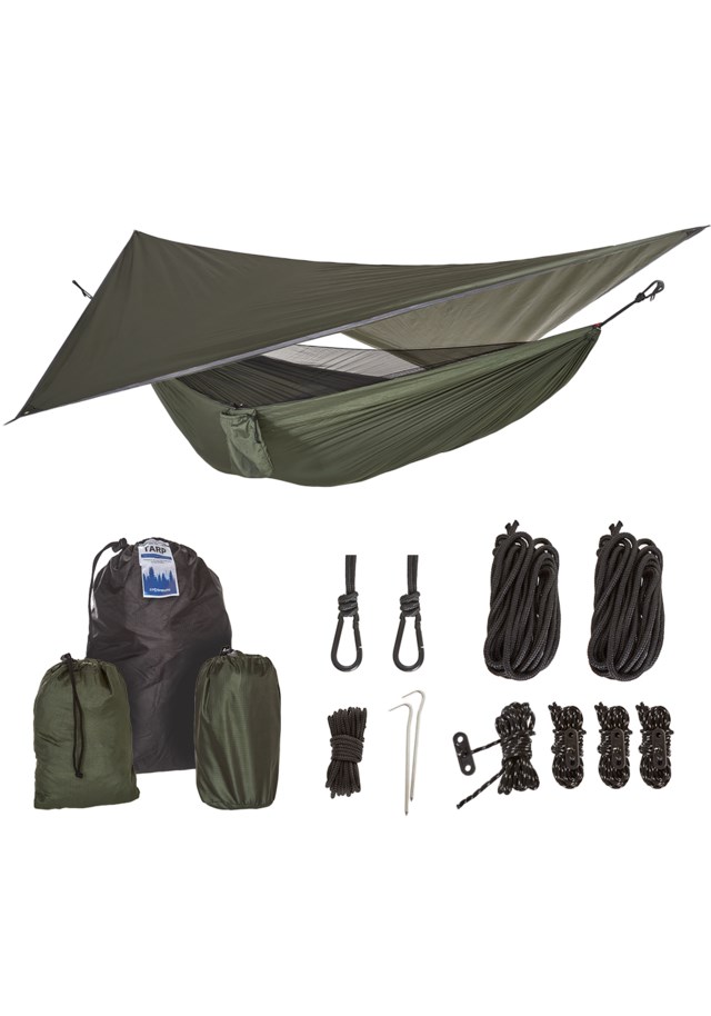 Fonnabu hengekøye er en slitesterk og lett hengekøye for én person. Hengekøyen henges opp med ferdigknyttet, sliteststerkt nylontau og har integrert myggnetting. Produktet kommer også med egen tarp som beskytter mot nedbør. Tarpen har en vannsøyle på 2 000 mm.