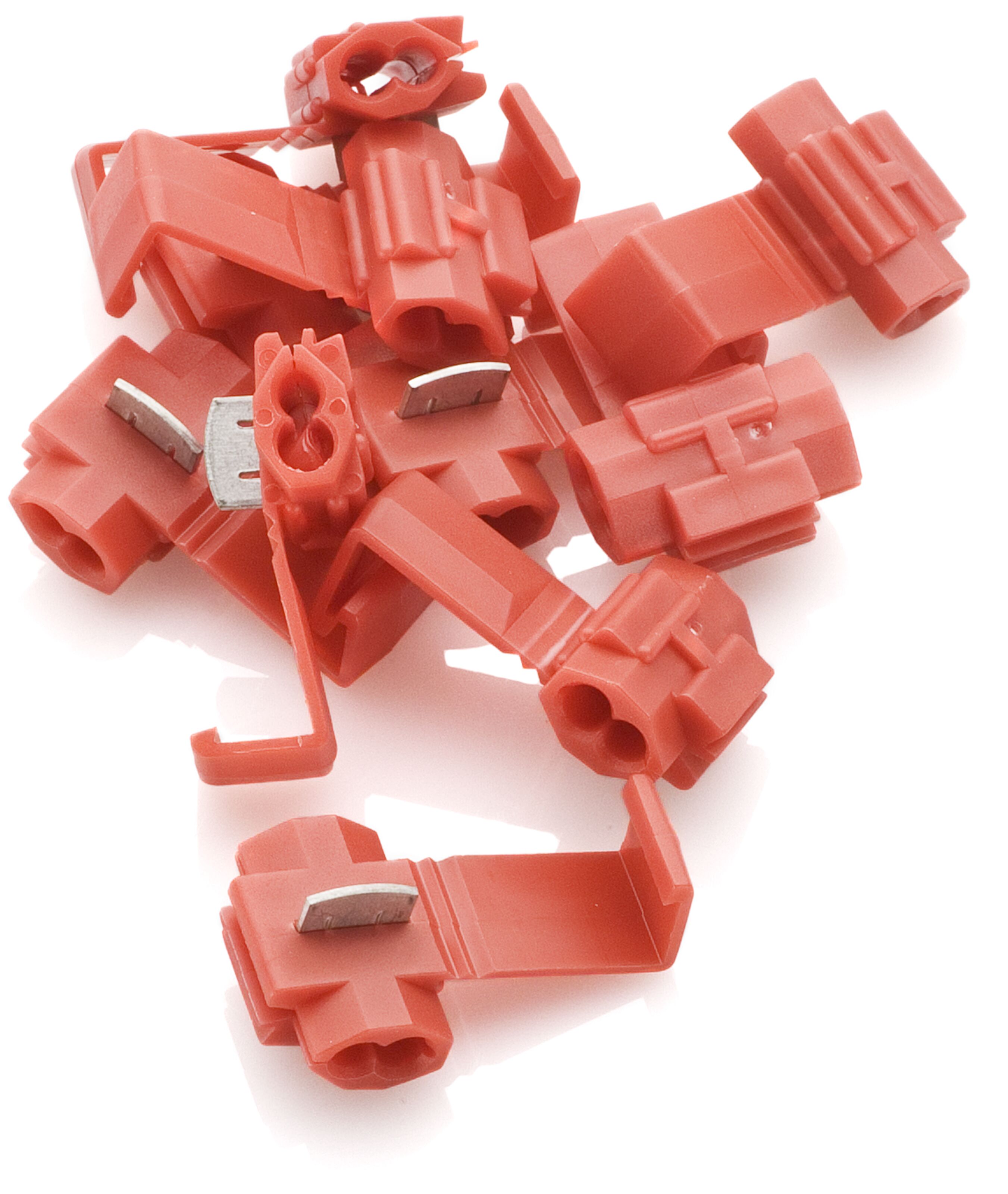 Rød kabelforgrening for kabler på 0,5–1,5 mm². Kabelen trenger ikke å avisoleres, siden klemmen skjærer gjennom isoleringen. Bare nebbtang er nødvendig for montering. 10-pk.