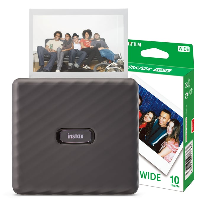 Med den kompakte og brukervennlige fotoskriveren Fujifilm Instax Link WIDE kan du skrive ut bilder i bredt format direkte fra smarttelefonen din. Med trådløs Bluetooth-tilkobling og en dedikert app kan du enkelt redigere og tilpasse bildene dine med filtre, tekst og QR-koder før utskrift. Perfekt for å dele minner i større format med venner og familie. Den medfølgende 10-pakningen med Instax WIDE-film gjør at du får en komplett løsning rett ut av esken.