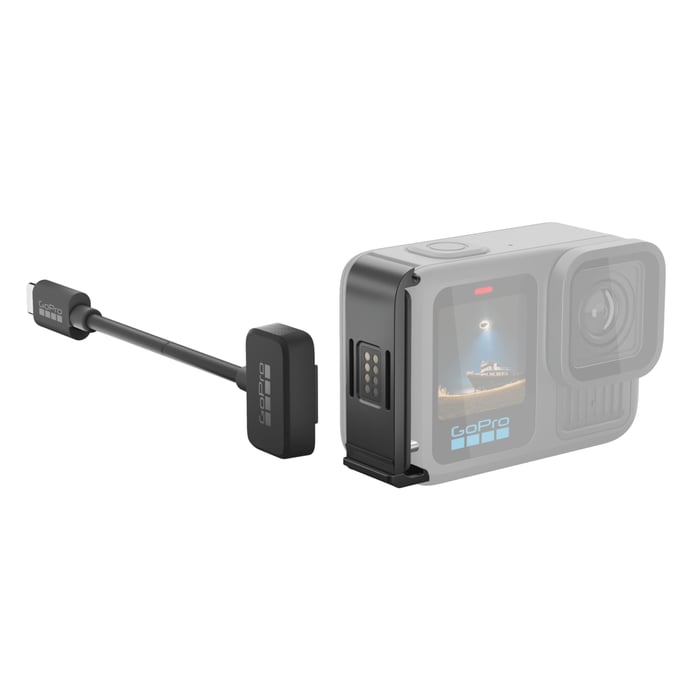 Dette settet inkluderer en ekstra dør til ditt beskyttelsesdeksel og en kabel for lading. Sammen gjør disse det mulig å lade din GoPro trådløst uten å måtte ta ut og koble til kabler.