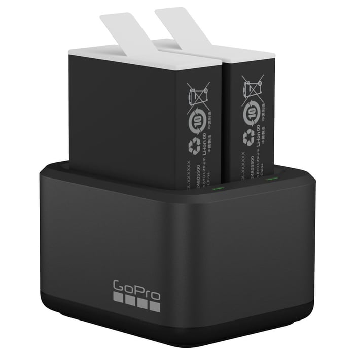 Inkluderer en dobbel batteri lader som lar deg lade to GoPro batterier samtidig + to Enduro batterier som du kan bruke som reserve eller for å erstatte batteriene i HERO12 Black eller HERO11 Black. De kan også brukes med HERO10 Black for å forbedre ytelsen i kalde omgivelser mens det også kan øke opptakstiden med rundt 40% i mer moderate temperaturer.