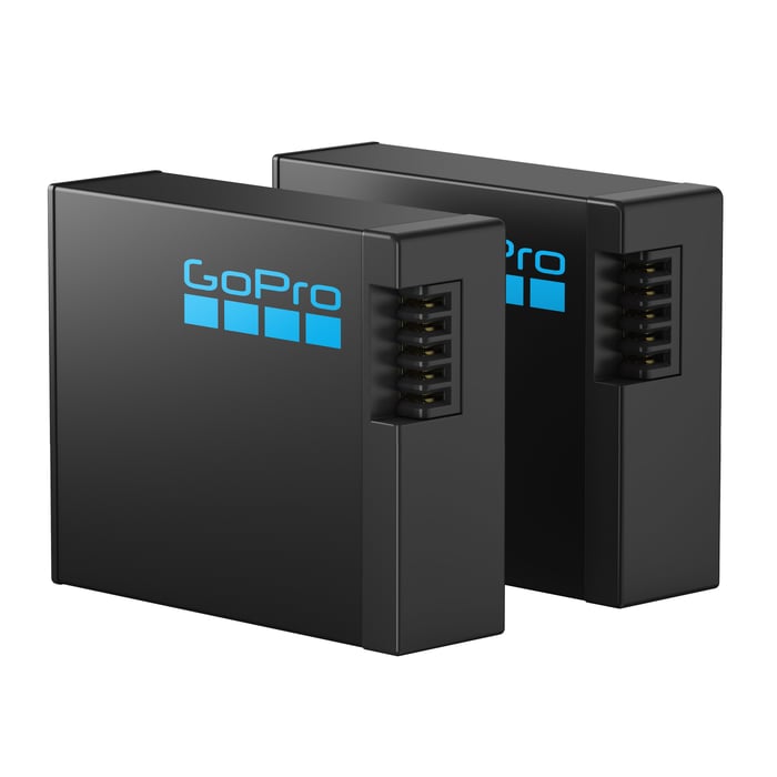 I denne pakken får du to ekstra batterier til din Hero 13. Hvert batteri har en kapasitet på 1900 mAh, som gir deg opptil 2,5 timers bruk ved 1080p30 og 1,5 timer ved 5.3K30