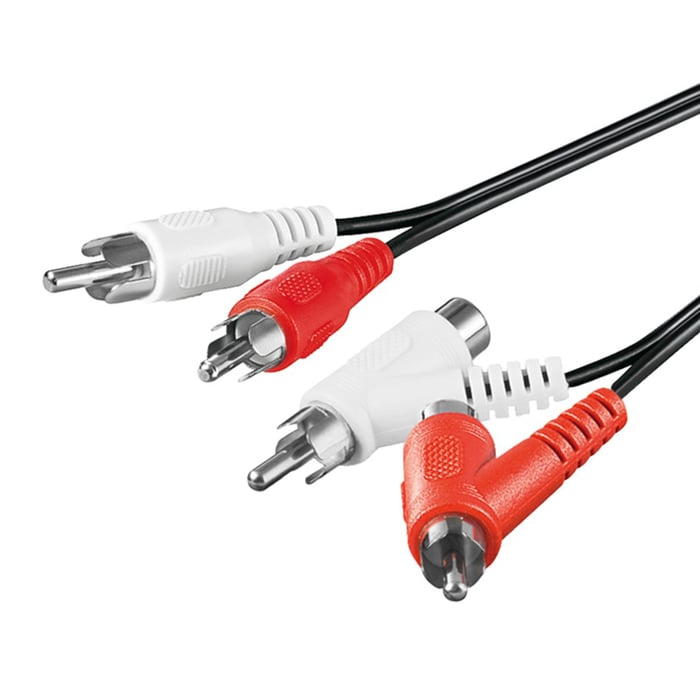 Grenkabel for tilkobling av lyd. 2x RCA-hanner til 2x RCA-hanner pluss hunner på baksiden (piggyback). Takket være dette kan kabelen brukes uten å blokkere lydinnganger eller lydutganger. Gir mulighet for en ekstra lydkilde eller en lydkilde til to enheter. Kabellengde: 1,5 m.