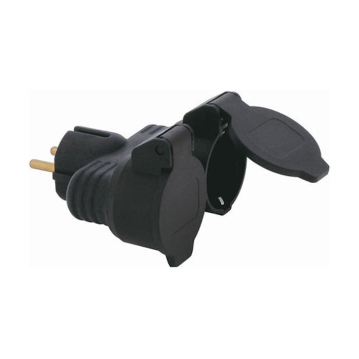 2-veis jordet grenuttak med selvstengende lokk som beskytter mot fuktighet. Godkjent for utendørsbruk (IP44-klassifisert). Maks. belastning: 3680 W.