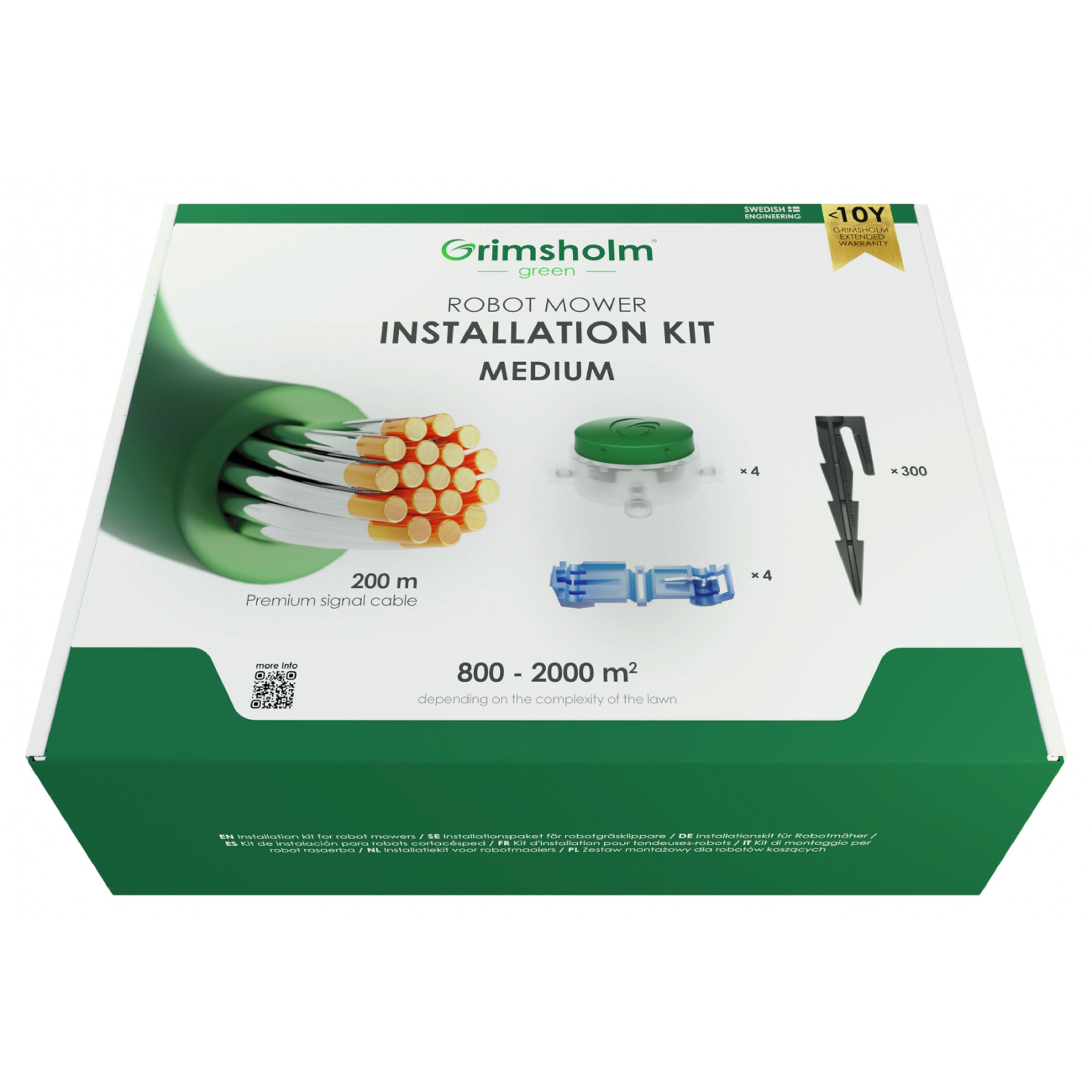 Installasjonspakke med 200 m signalkabel for robotgressklipper. Inneholder 200 m signalkabel (Ø2,45 mm), 300x signalkabelholdere, 4x skjøtekontakter og 4x tilkoblingskontakter til ladestasjon. 10 års garanti.