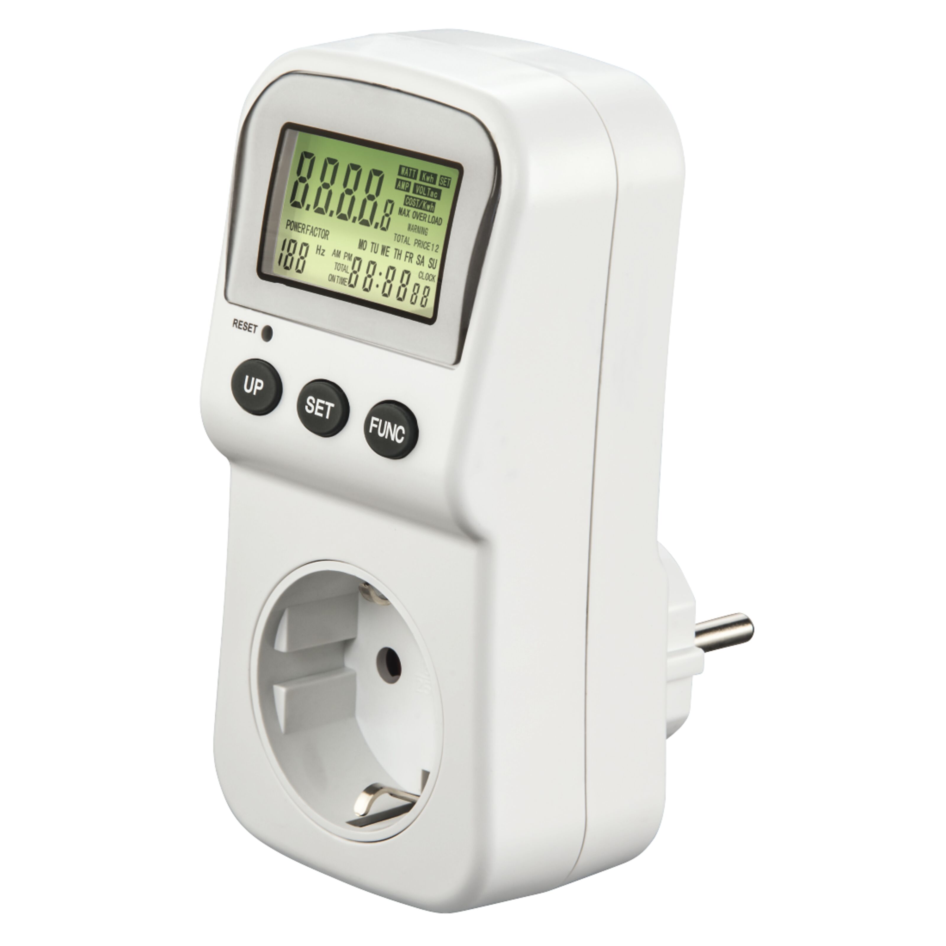 Jordet energimåler som kobles direkte til stikkontakt (230 V). Tydelig LCD-display som viser gjeldende effekt, energimengde og nettspenning m.m. Velegnet til å regne ut strømkostnader. Det innebygde backupbatteriet sikrer at lagret informasjon ikke går tapt ved strømbrudd. Maksbelastning: 3680 W/16 A.