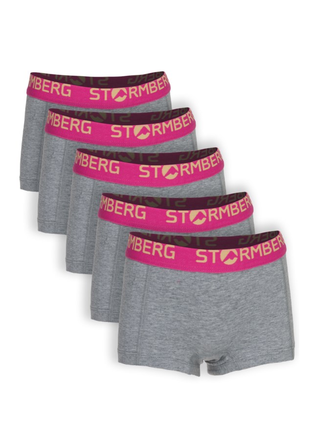 5-pk boxershorts til jente 1-7 år i en myk og finkjemmet bomullskvalitet med spandex. Denne materialkombinasjonen gjør at boxeren er meget god og behagelig å ha på, samt at spandexen gjør at det er elastikk i boxershortsen, noe som øker komforten.