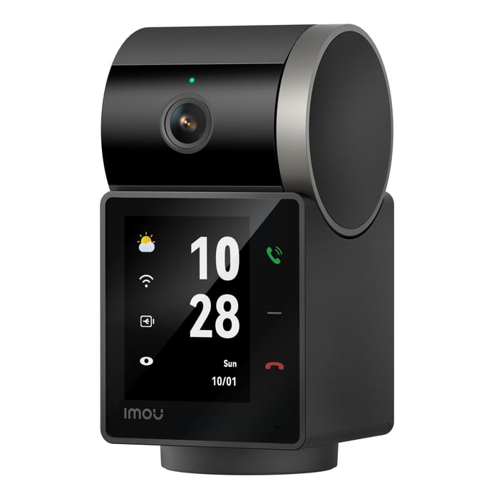 Smart overvåkingskamera med skarp 5 MP-oppløsning og 360° panorering. I tillegg har kameraet AI-basert bevegelsesoppdagelse og sporing av både mennesker og dyr, for effektiv overvåking av rommet. Varsler sendes til mobilen din, slik at du kan se hva som skjer her og nå, og utløse sirenen ved behov. Kameraet har også en innebygd 2,4" skjerm som du kan ha videosamtaler med, via kameraets mobilapp. Det innebygde batteriet holder kameraet i gang i 30 minutter, i tilfelle strømbrudd.
