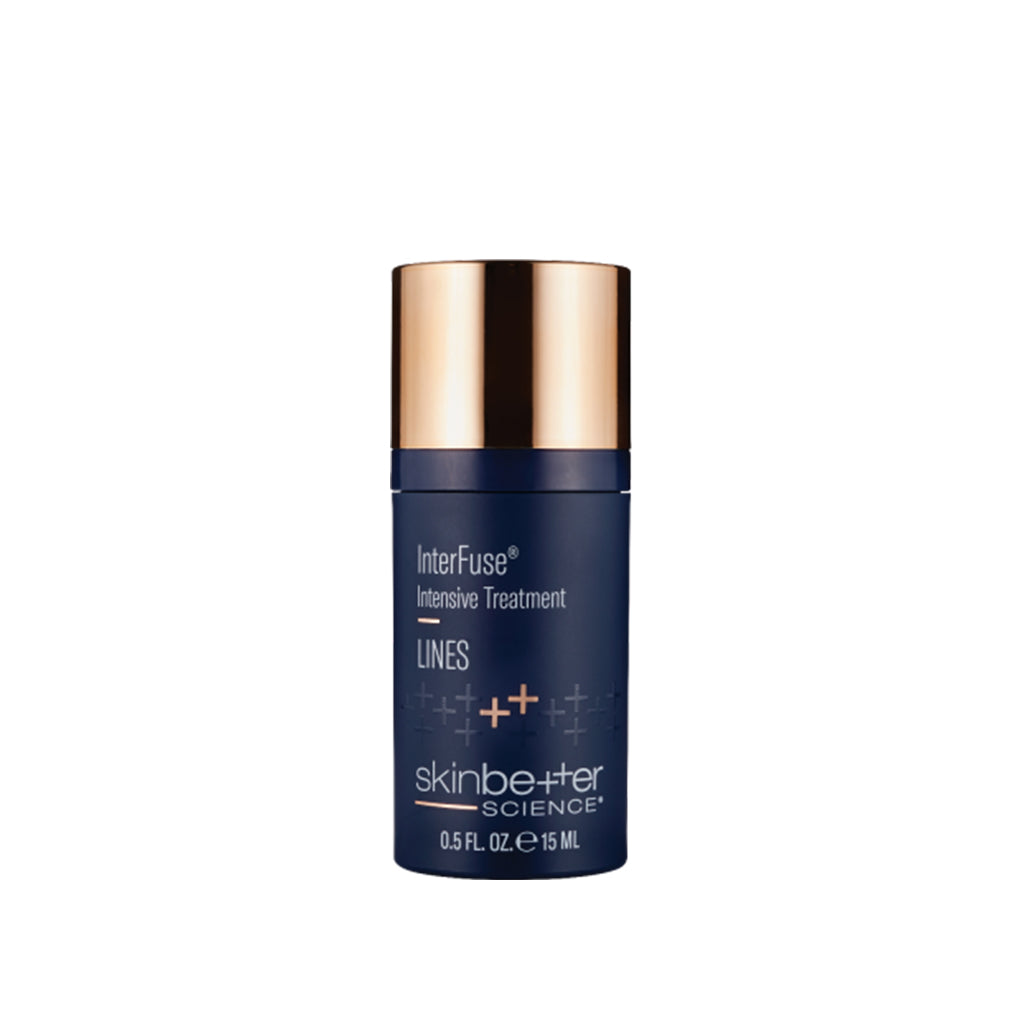 InterFuse Intensive Treatment Lines er et effektivt og avansert hudpleieprodukt designet for å redusere synlige fine linjer, mimikklinjer og rynker. Produktet fungerer som et topikalt alternativ til injeksjoner, ved hjelp av hyaluronsyre med høy molekylvekt som raskt og dypt trenger inn i huden og fyller ut linjer og rynker. Den revolusjonerende InterFuse™-teknologien leverer i tillegg signalpeptider og fire varianter av hyaluronsyre som binder vann til hudens overflate for en glattende og fuktighetsgivende effekt. To nerveavslappende peptider i serumet bidrar til umiddelbar reduksjon av mimikklinjer, mens en blanding av aminosyrer, peptider og C-vitamin stimulerer kollagenproduksjonen og forbedrer hudens fasthet. Serumet har en lett og raskabsorberende tekstur som passer for alle hudtyper. Dermatologisk testet.
