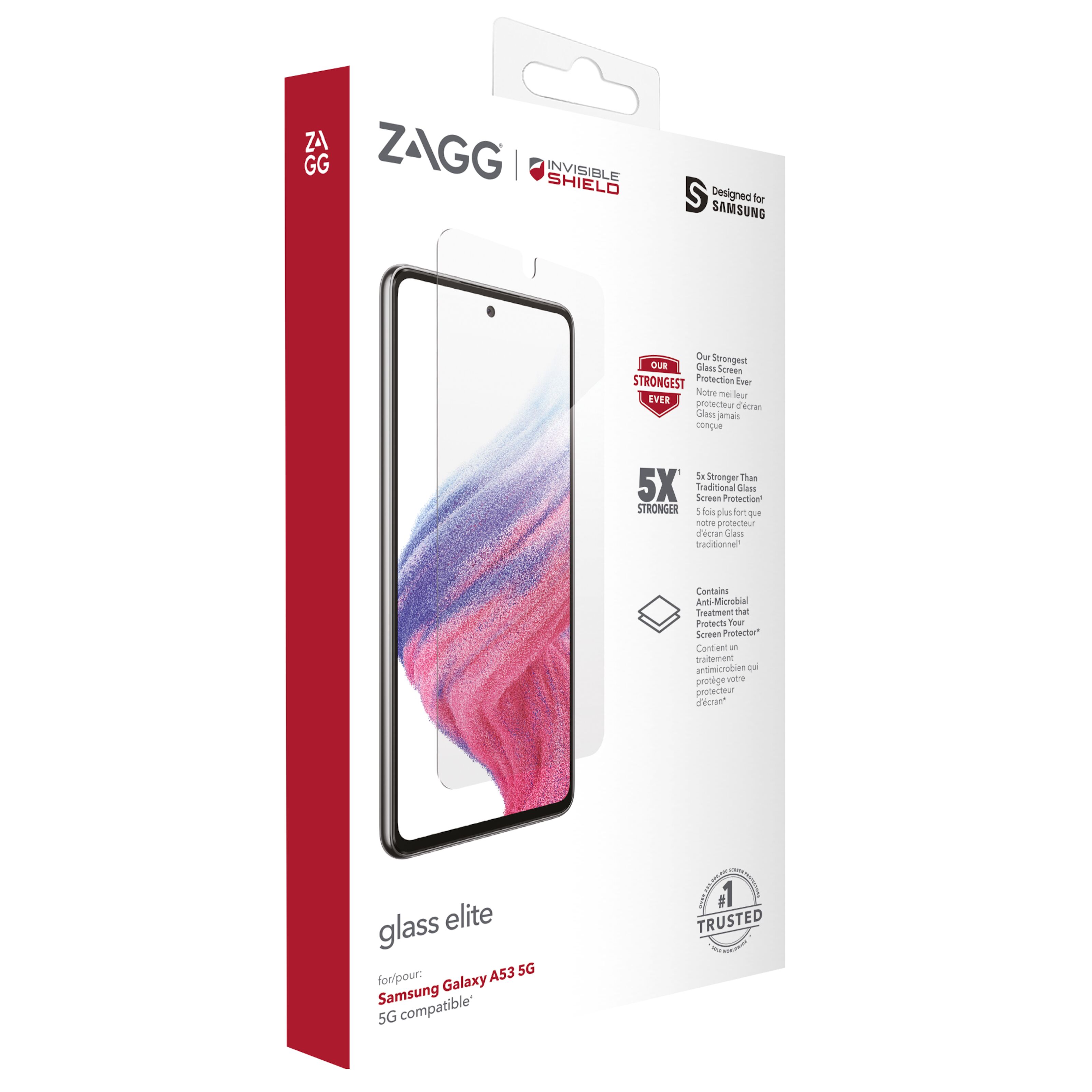 Ekstra robust og antibakteriell skjermbeskytter i aluminiumsilikatglass for Galaxy A53 5G. Økt holdbarhet og ripebestandighet med ionbytteteknologi som forbedrer overflatekompresjonen. ClearPrint motvirker fett- og fingeravtrykk samtidig som materialet er antibakterielt for å hemme utvikling av luftfremkallende bakterier. Gir samme følelse som mobilens originalskjerm og er veldig motstandsdyktig mot riper. Skjermbeskytteren er enkel å sette på ved hjelp av medfølgende installasjonsramme og gummimatte.
