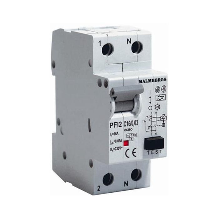 Kombinert jordfeilbryter og treg automatsikring for å beskytte separate grupper. Egnet ved f.eks. installasjon av gulvvarme. 1-polet overstrøms- og kortslutningsvern samt 2-polet bryting. Utløses ved feilstrøm på 30 mA. Utløsingstid på under 30 ms. Sikringen utløses ved 10 A. Nominell spenning: 230 V. 2 modulers bredde.