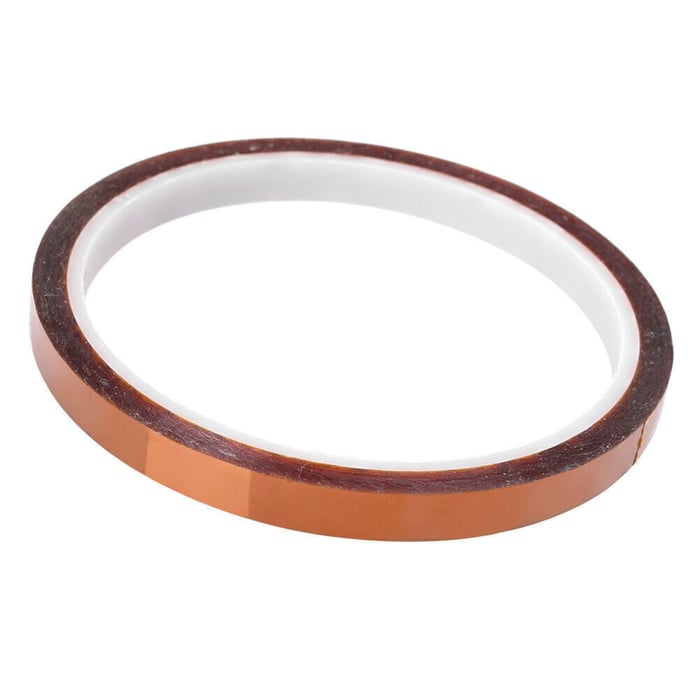 Teip av Kapton (polyamid) med silikonbasert klebemateriale. Teipen er varmebestandig og egner seg ved 3D-printing, som maskeringsteip ved lodding og som isolering av elektronikkomponenter (f.eks. batteripakke). Oppbevares tørt i romtemperatur, og ikke i direkte sollys. Mål: 9 mm x 33 m. Farge: Brun.